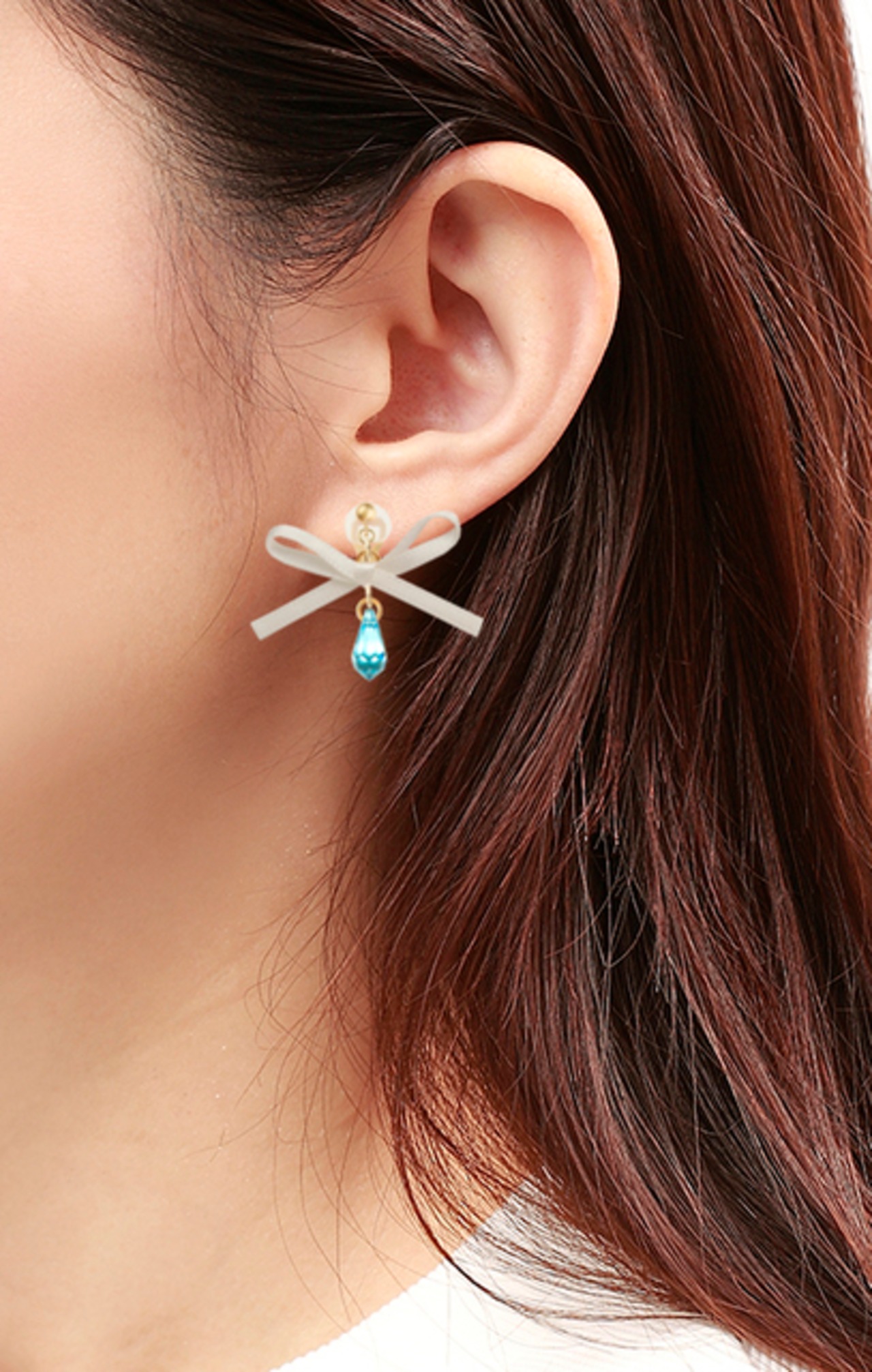 シリコン付イヤリングで痛くなりにくい 可愛らしい雰囲気のイヤリングです。 ■BLEU基調(No.20〜26お揃い) シリコン付イヤリング サテンリボン スワロフスキードロップ