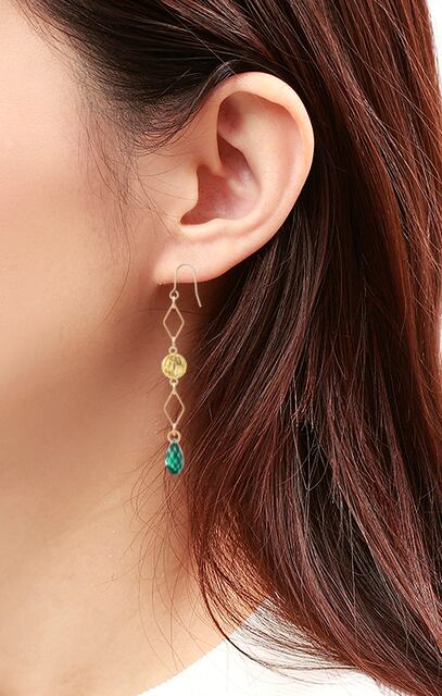大人可愛い雰囲気に。 透け感とキラキラスワロフスキーでこれからの季節にも◎ ■Green基調(No.33〜38お揃い) フックピアス ひし形リング 透かしデザインボール スワロフスキー